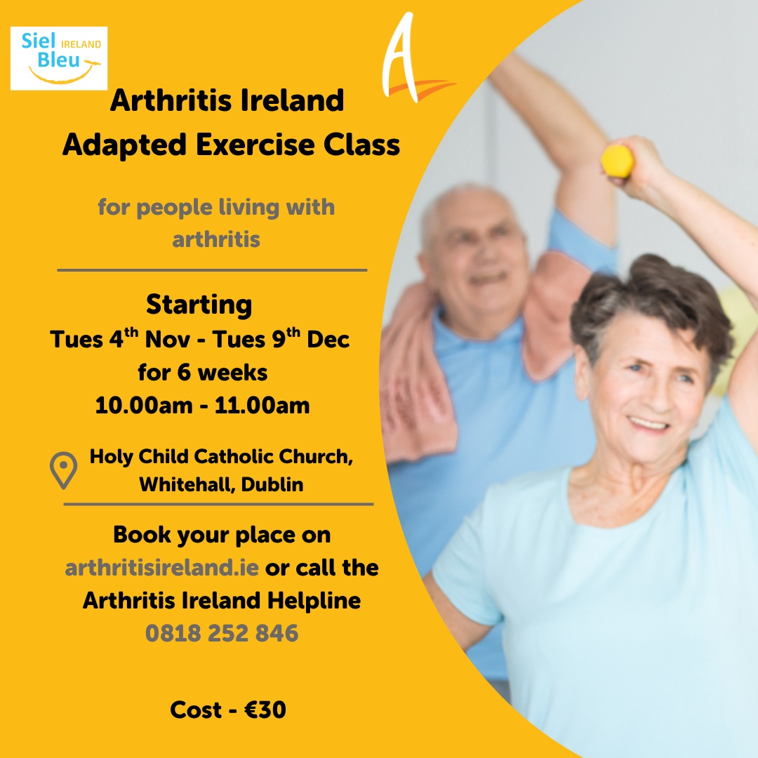 New exercise class for people with Arthritis starting Tuesday November 4th.  See poster for details.